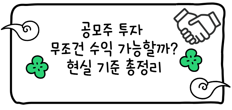 공모주 투자 전략은 무엇이고 초보자가 실전에서 수익률을 높이는 방법은 무엇일까? 🧭 투자전략은 ‘방법’이 아니라 ‘순서’입니다 👉 ① 투자 전 반드시 점검해야 할 기준매수 전에 실수를 줄이는 구조 👉 ② 매수·매도 전략의 핵심 공식감정이 아닌 규칙으로 대응하는 법 👉 ③ 언제 수익을 확정해야 할까?버는 것보다 중요한 ‘지키는 전략’ 👉 ④ 시장 상황별 투자전략 정리상승장·횡보장·하락장 대응법✔ 전략 없이 오래 들고 가는 것은 ‘장기투자’가 아니라 ‘방치’입니다. 공모주 투자 전략은 단순히 청약만 한다고 수익이 나는 구조가 아닙니다. 많은 초보자가 “무조건 참여하면 돈 번다”고 오해합니다.👉 공모주 수익률은 ‘선별 + 배정 + 매도’ 3단계 전략에서 결정됩니다.✅공모주 일정 한눈에 보기..