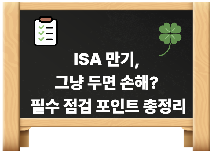 ISA 만기 전에 무엇을 점검해야 손해를 피할 수 있고, 초보자는 어떤 체크리스트를 꼭 확인해야 할까? 🧠 실전 투자는 ‘기준 → 실행’ 순서입니다 👉 ① 실패 확율 줄이는 핵심 체크리스트감정 매매를 막는 첫 단계 👉 ② 매수 매도 기준손실을 관리하는 최소 조건 👉 ③ 언제 사고 언제 팔아야할까?수익을 지키는 실전 기술✔ 기준 없이 오래 버티는 것은 ‘투자’가 아니라 ‘버팀’입니다. ISA 계좌를 만들 때는“절세 좋다더라”라는 말만 듣고 시작했는데,막상 만기가 다가오면 이렇게 생각합니다.“이제 뭐 하면 되지?”“그냥 만기되면 알아서 되는 거 아냐?”여기서 초보자들이 가장 많이 하는 오해가 하나 있습니다.👉 ISA 만기는 자동으로 최적화된다👉 아닙니다.ISA 만기는 ‘점검 안 하면 손해가 ..