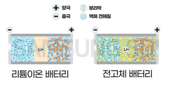 반면 전고체 배터리는 전해질이 고체이기 때문에 충격에 의한 누액 위험이 없고 인화성 물질이 포함되지 않아