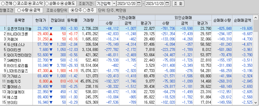코스닥 순매도 종목은 오픈엣지테크놀로지가 상위에 있습니다
