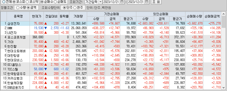 외국인과 기관은 삼성전자를 상당히 많이 사고 있네요...