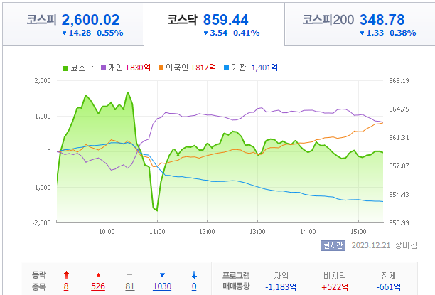 | 오늘의 한국 시장 체크하기 (0) | 2023.12.22 |