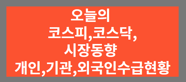 오늘의 코스피,코스닥,시장동향과 개인,기관,외국인의 수급현황을 간단히 알아보겠습니다