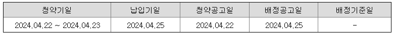 ③ 일반투자자 청약일 : 2024년 04월 22일 ~ 04월 23일(2일간)