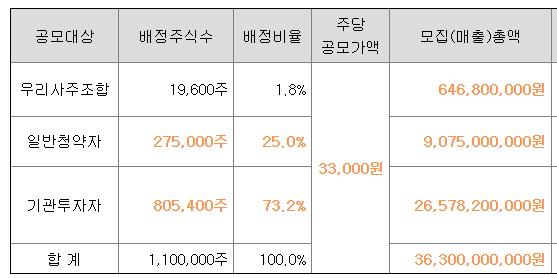 ◆디앤디파마텍 청약유형별 공모주식 배정
