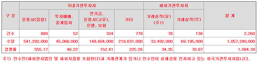 ① 기관투자자 청약일 : 2024년 06월 10일 ~ 06월 11일(2일간)
