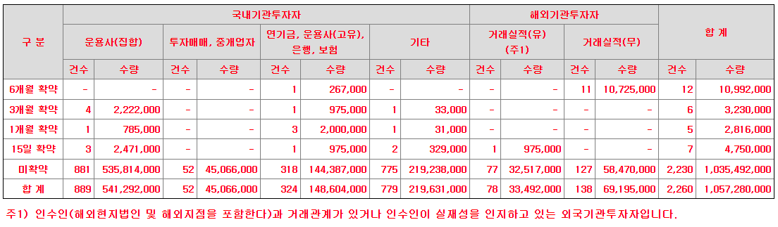 ① 기관투자자 청일 : 2024년 06월 10일 ~ 06월 11(2일간)