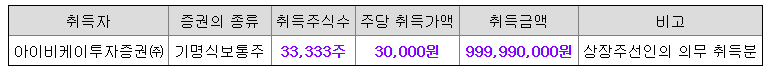 상장주선인 아이비케이투자증권(주)는 금번 공모 시 「코스닥시장 상장규정」제13조 제5항 제1호 나목에 의거 33,333주를 추가로 인수하게 됩니다. 상장주선인의 상규정에 따른 상장주선인의 의무인수분은 상장 후 3개월간 의무보유예탁됩니다.