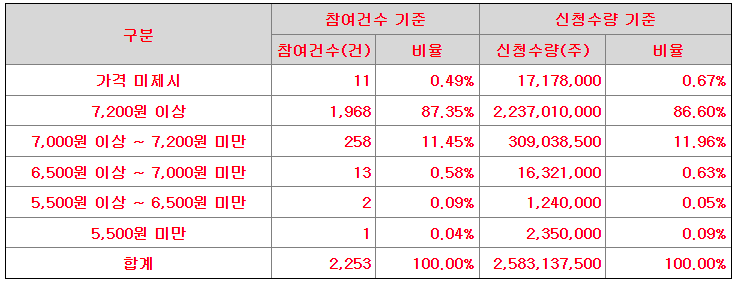 기관투자자 : 공모주식의 69.1% (2,350,000주)를 배정합니다.