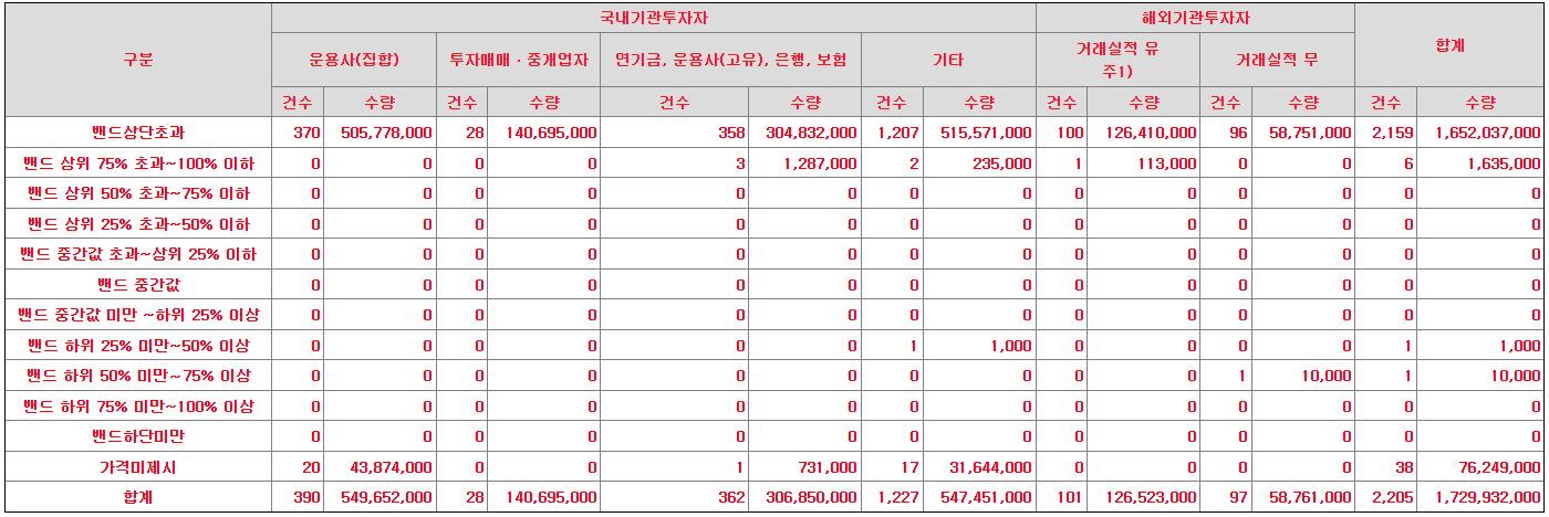 수요예측 참여 건수 및 수량은 수요예측 이전 기관투자자 배정물량인 4,180,000~5,700,000주의 상단인 5,700,000주를 기준으로 주문을 받은 결과이며, 경쟁률은 4,180,000주를 기준으로 산출된 결과입니다.