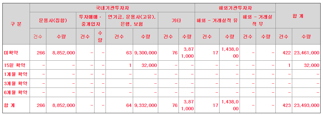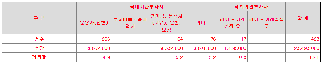 「증권 인수업무 등에 관한 규정」 제9조의2에 의거하여 관계인수인으로 구분되는 기관은 금번 수요예측 참여 시 신청가격을 제시하지 않았습니다.