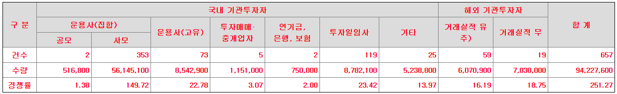 - 기관투자자 청약일 : 2024년 10월 14일(월) ~ 2024년 10월 15일(화) (2일간)