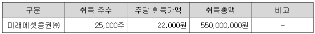 주당 취득가액 및 취득총액은 대표주관회사와 발행회사가 협의하여 결정한 확정공모가액 22,000원 기준입니다.