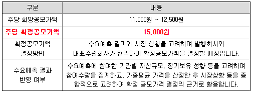 ① 기관투자자 청약일 2024년 10월 17일 ~ 18일 (2일간)