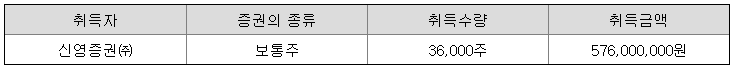** 취득금액은 희망공모가액 16,000원 ~ 18,500원 중 최저가액인 16,000원 기준입니다.