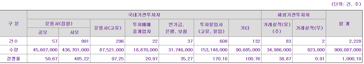 ① 기관투자자에게 공모물량 중 75.0%인 900,000주를 배정합니다.