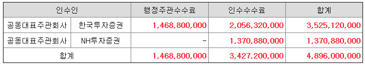 모집(매출)가액, 모집(매출)총액, 인수금액 및 인수대가는 공동대표주관회사와 발행회사인 ㈜더본코리아가 협의하여 결정한 확정공모가액인 34,000원 기준입니다.