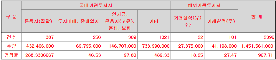 대표주관회사인 대신증권㈜는 상기 희망공모가액을 바탕으로 국내외 기관투자자를 대상으로 수요예측을 실시하였으며, 확정공모가액은 동 수요예측 결과 및 주식시장 상황 등을 고려하여 대표주관회사 및 발행회사가 협의하여 16,000원으로 확정하였습니다.
