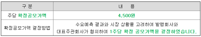 주당 공모가액 및 모집(매출)총액은 제시 확정공모가액 4,500원 기준입니다.