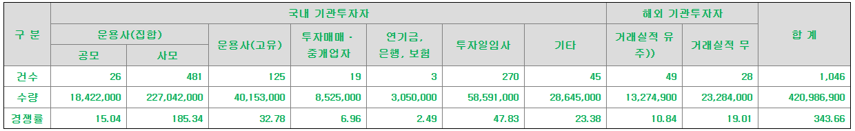 ② 기관투자자 : 공모주식의 25.0% (437,500주)를 배정합니다.