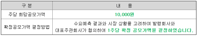 주당공모가액 및 모집(매출)총액은 확정공모가액 10,000원 기준입니다.