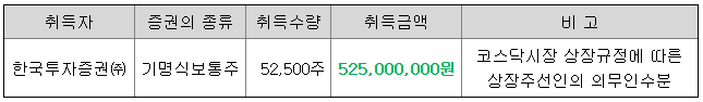 상장주선인의 의무 취득분은 사모의 방법으로 발행한 주식을 취득하여야 하며, 상장예비심사신청일부터 신규상장신청일까지 해당 주권을 취득하여야 합니다. 상장주선인은 해당 취득 주식을 상장일로부터 3개월간 계속 보유하여야 합니다. 또한, 상장주선인의 의무 취득분은 코스닥시장 상장규정상 모집 및 매출하는 가격과 동일한 가격으로 취득하여야 하며, 상기 취득금액은 대표주관회사인 한국투자증권㈜와 발행회사인 ㈜엠오티가 협의하여 결정한 확정공모가액 10,000원 기준입니다. 금번 공모에서 청약 미달이 발생하여 상장주선인이 자기의 계산으로 잔여주식을 인수하는 경우 의무인수 주식의 수량에서 잔여주식 인수수량만큼을 차감한 수량의 주식을 취득하게 됩니다. 상기 의무 취득분은 확정가액에 따라 취득수량이 변경될 수 있습니다.