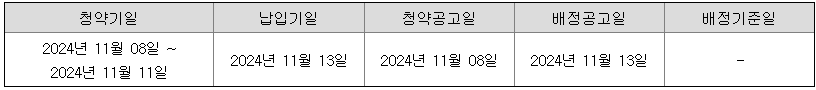 - 일반청약자 청약일: 2024년 11월 08일 ~ 2024년 11월 11일(2일간)