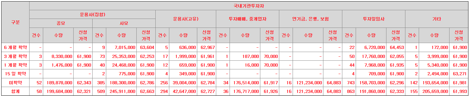 ③ 기관투자자 청약일 : 2025년 01월 21일 ~ 01월 22일(2일간)