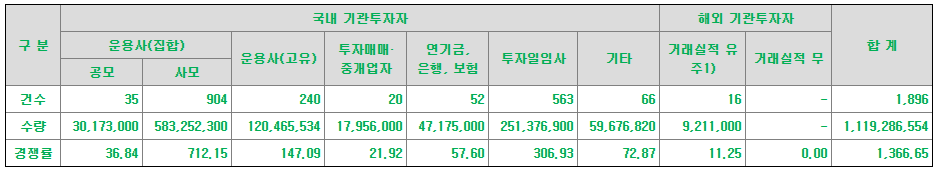 ② 기관투자자 : 총 공모주식의 65.00% (819,000주)를 배정합니다. (기관투자자에는 고위험고수익투자신탁등 및 벤처기업투자신탁을 포함)
