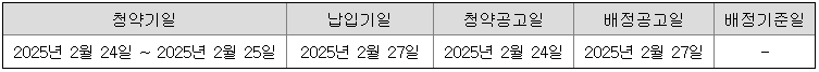 - 일반청약자 청약일: 2025년 2월 24일 ~ 2025년 2월 25일 (2일간)