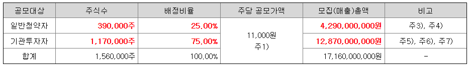 주당 공모가액 및 모집(매출)총액은  대표주관회사와 발행사가 협의하여 결정한 확정공모가액인 11,000원 기준입니다.