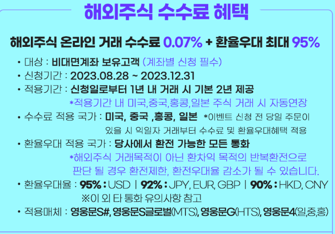 환율우대를 95%나 해주기 떄문에 환전시 수수료의 부담을 줄이고 투자를 할수 있는 장점이 있습니다
