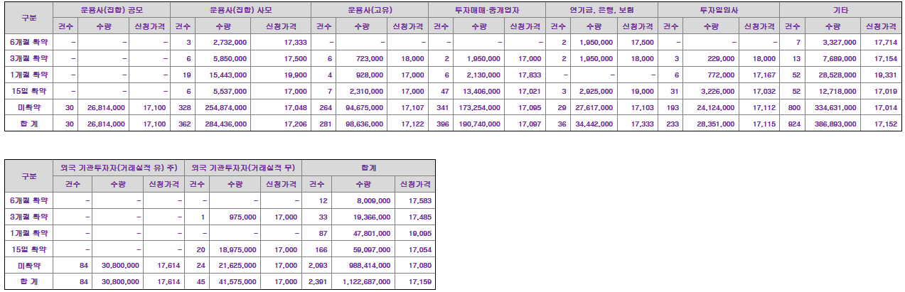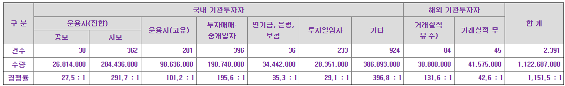 1주당 확정공모가액 17,000원 이상 가격 제시자 및 가격 미제시자(관계인수인)에게 기관청약자 물량을 배정하였습니다.