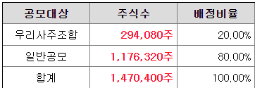 공모는 일반청약자에게 367,600주 이상 441,120주 이하를 배정할 예정으로서,