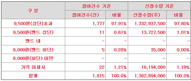 국내외 기관투자자를 대상으로 수요예측을 실시하였으며,