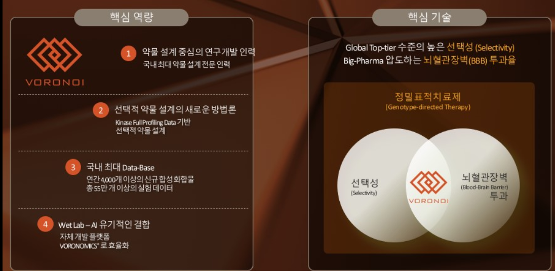 유기적인 피드백 등 핵심 역량을 바탕으로 선택성과 뇌투과도를 높이는 핵심 기술을 보유하고 있습니다.