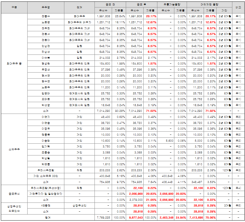 상장예정주식수 9,877,043주의 약 24.94%에 해당하는 2,463,348주는 상장 직후 유통가능물량입니다