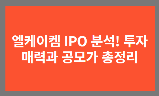 목차 📌 엘케이켐 IPO 개요엘케이켐(ELKEM)은 최근 IPO(기업공개)를 준비 중인 기업으로, 화학 관련 산업에서 중요한 역할을 수행하고 있는 것으로 보입니다.1. 회사 개요 및 주요 사업엘케이켐은 첨단 화학소재를 제조 및 공급하는 기업으로, 주요 사업 분야는 다음과 같습니다.반도체 및 디스플레이용 화학소재이차전지 관련 소재고부가가치 화학제품 등 ◎엘케이켐 공모일정 모집(매출)가액의 확정(이하 "확정공모가액")은 청약일 전에 실시하는 수요예측 결과를 반영하여 대표주관회사인 신영증권㈜와 발행회사인 ㈜엘케이켐이 협의하여 1주당 확정공모가액을 21,000원으로 최종 결정하였습니다. ◎엘케이켐 공모가격 대표주관회사인 신영증권㈜는 ㈜엘케이켐의 코스닥시장 상장을 위한 공모와 관련하여 당사의 영업현황..