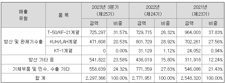 ◎기업공부◎한국항공우주 매출실적