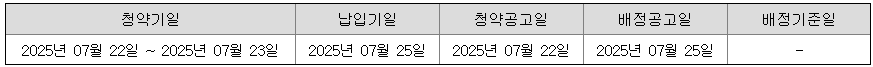 - 일반청약자 청약일: 2025년 07월 22일~07월 23일(2일간)