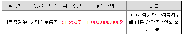 ※ 금번 공모에서 청약 미달이 발생하여 상장주선인이 자기의 계산으로 잔여주식을 인수하는 경우 상장주선인의 의무 취득분(31,250주)에서 잔여주식 인수 수량만큼을 차감한 주식을 취득하게 됩니다. 또한, 모집(매출)하는 물량 중 청약 미달이 공모물량의 3%(취득금액이 10억원을 초과하는 경우에는 10억원에 해당하는 수량) 이상 발생하여 상장주선인이 이를 인수할 경우 상장주선인이 추가로 취득하여야 하는 의무 취득분이 없을 수 있습니다.