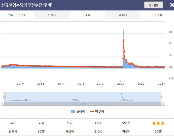 신규실업수당청구건수(전주비)는 지난주에 처음으로 실업보험을 청구한 사람들의 수를 측정하는 것이다. 이 데이터는 미국 경제 데이터 중 가장 먼저 나오는 것으로, Department of Labor에서 발표된다.시장에 미치는 영향은 주마다 다르다. 발표치가 예상보다 높으면 USD의 가치에 부정적으로 작용하며 발표치가 예상보다 낮으면 USD의 가치에 긍정적으로 작용한다.