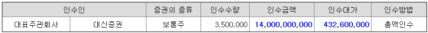 대표주관회사인 대신증권㈜는 상기 희망공모가액을 바탕으로 국내외 기관투자자를 대상으로 수요예측을 실시하였으며, 확정공모가액은 동 수요예측 결과 및 주식시장 상황 등을 고려하여 대표주관회사 및 발행회사가 협의하여 4,700원으로 확정하였습니다,