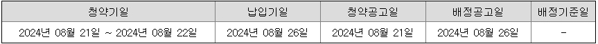 - 일반청약자 청약일: 2024년 08월 21일 ~ 2024년 08월 22일 (2일간)