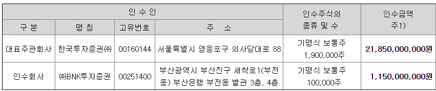 인수금액은 대표주관회사와 발행회사가 협의하여 결정한 확정공모가액 11,500원 기준으로 계산한 금액입니다.