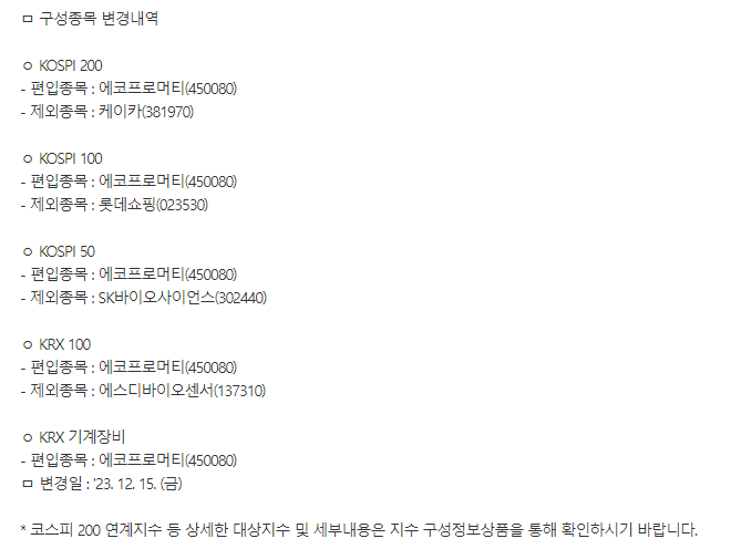 에코프로머티리얼즈의 코스피200에 편입이 됩니다