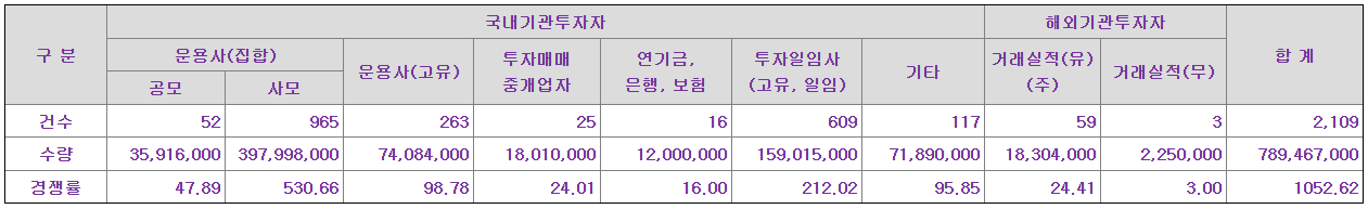 ① 기관투자자에게 공모물량 중 75.0%인 750,000주를 배정합니다.