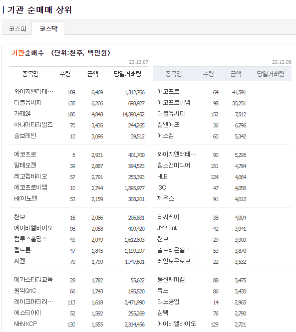 코스닥 기관매매현황