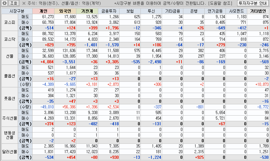 금일 코스피 코스닥 옵션 선물 시장 동향