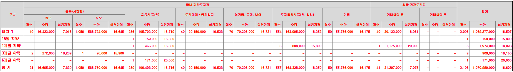 - 기관투자자 청약일: 2024년 08월 12일 ~ 08월 13일 (2일간)